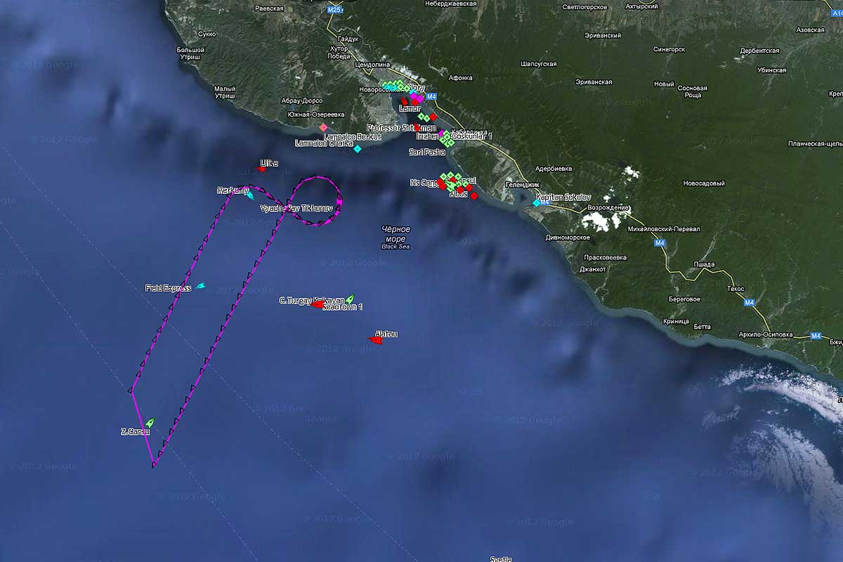 14 апреля 2012 года судно VYACHESLAV TIKHONOV вело исследования в Черном море в районе Новороссийска.