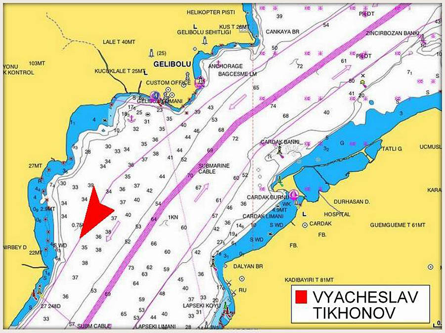 "Вячеслав Тихонов" в Дарданеллах 15 января 2013 года. Фото с экрана АИС Ахмет ГЮВЕН (Ahmet GÜVEN) специально для BSNews