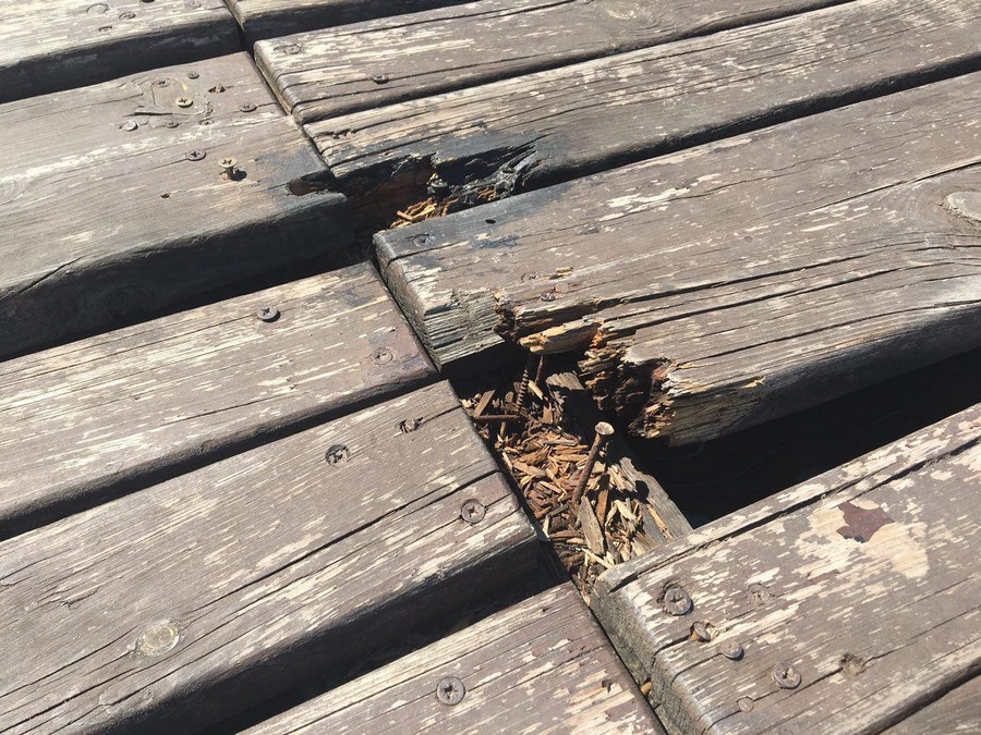 Доски, являющиеся основой пристани, выглядят так, как будто над ними поиздевались вандалы, часть и вовсе превратилась в щепки. Есть еще один неприятный момент – торчащие гвозди, о которые легко поранить ногу тем, кто захочет прогуляться по Графской пристани босиком или в обуви с минимальной подошвой, передают Новости Крыма.
