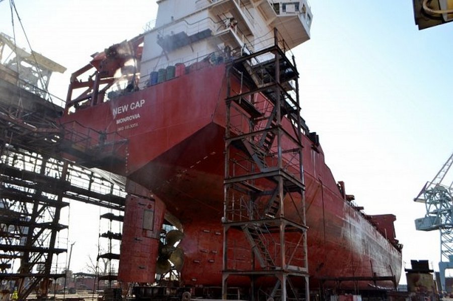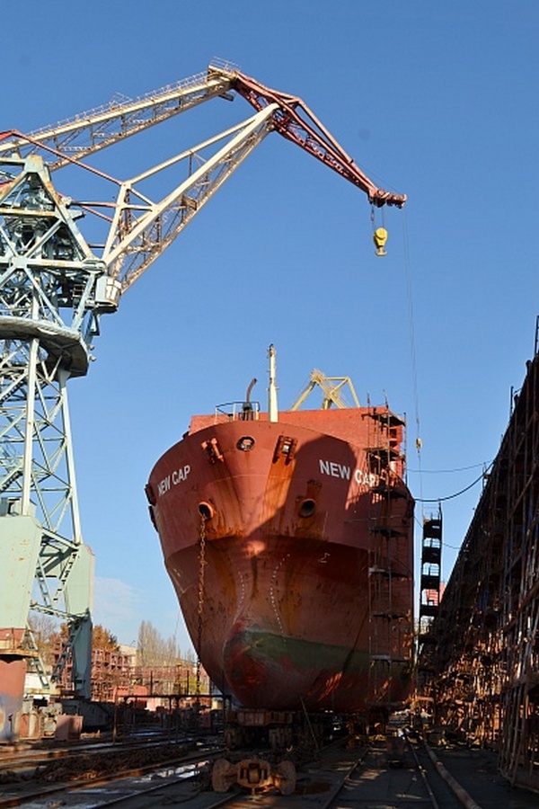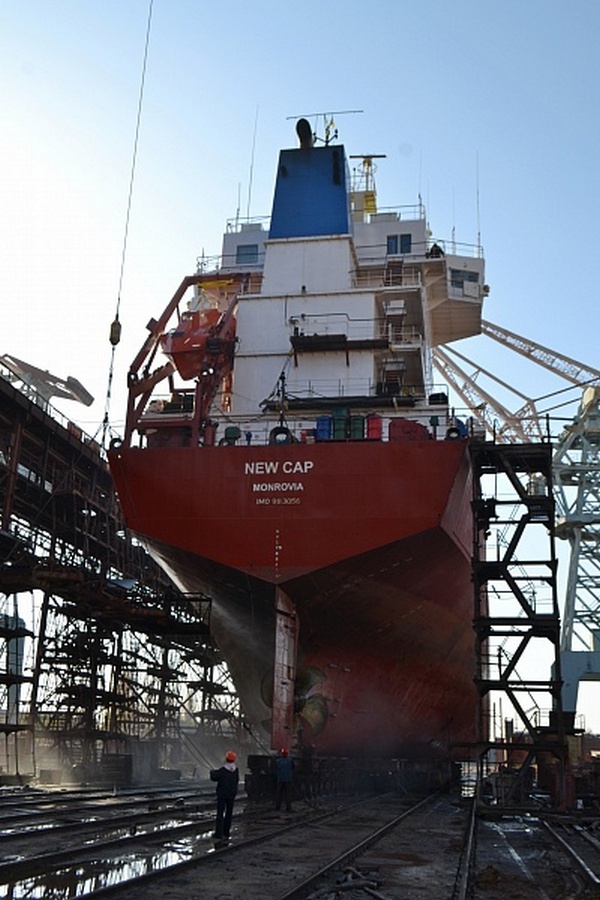 На херсонской верфи СМГ поднято на стапель универсальное морское судно NEW CAP (флаг - Liberia).