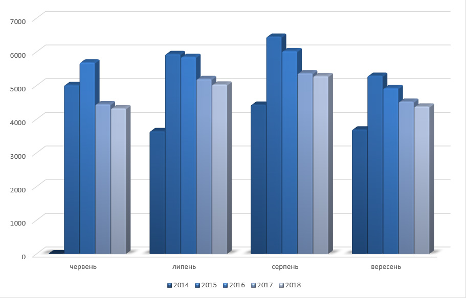 2018 р. - 4328 рейсів у червні, 5034 у липні, 5284 у серпні, 4380 у вересні.
