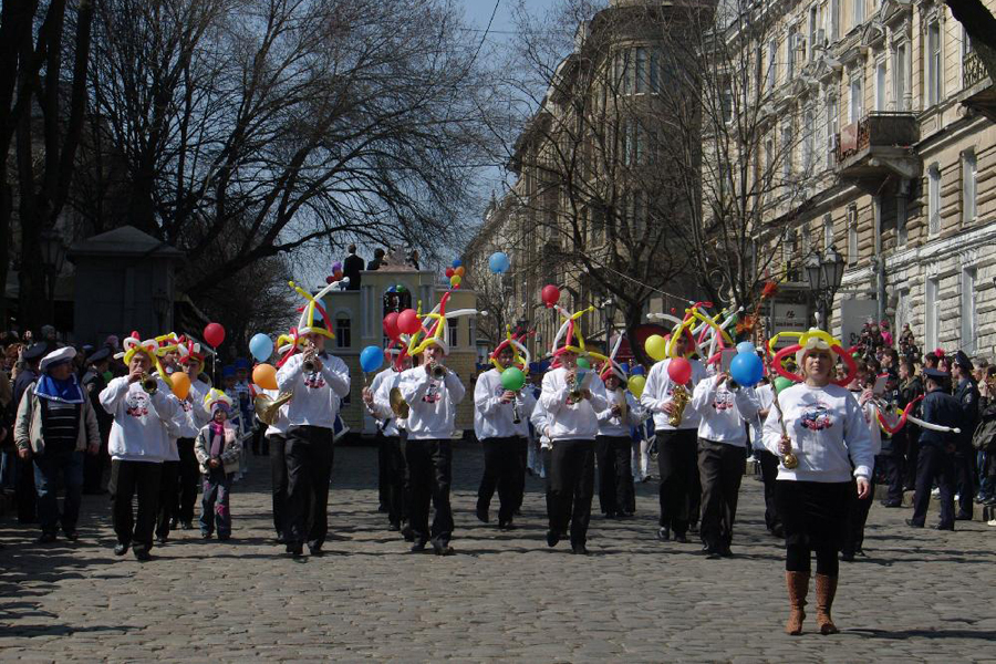 1 апреля состоялось карнавальное шествие «Добро пожаловать в Одессу» по маршруту: ул. Садовая/Соборка – Дерибасовская – Пушкинская – Думская площадь – Приморский бульвар – Екатерининская площадь.
