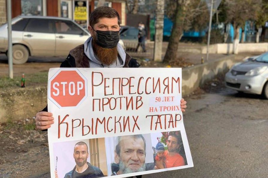 Активіст вийшов на одиночний пікет на підтримку політв'язнів кримських татар з Білогірська / Фото