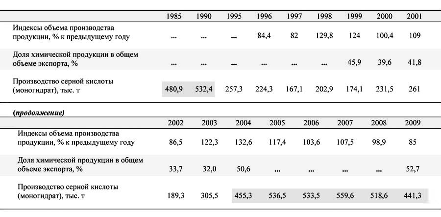 Таблица 9. Динамика некоторых показателей химической промышленности