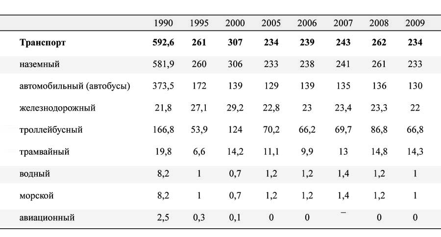 Таблица 14. Перевозка пассажиров по видам транспорта общего пользования, млн. чел.