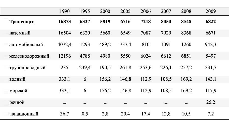 Таблица 13. Грузооборот по видам транспорта, млн. тонно-километров