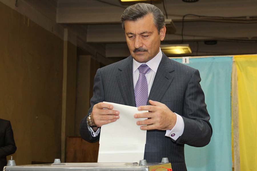 На фото: крымский премьер и глава республиканской организации Партии регионов Василий Джарты вместе с лидерами Меджлиса крымских татар и руководителями основных религиозных конфессий Крыма на церемонии закладки Соборной мечети в Симферополе, март 2011. Фото с сайта crimea-portal.gov.ua