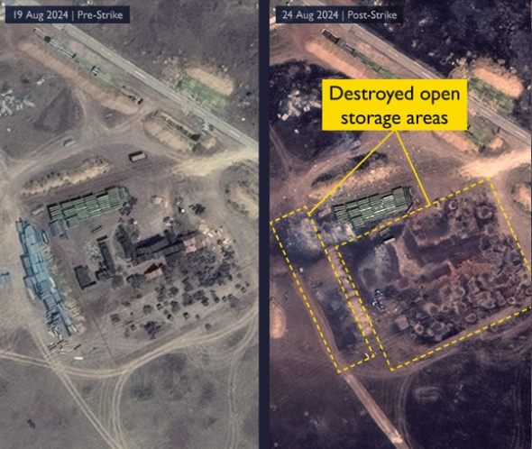 В результаті удару, як відзначено, було зруйновано 4 укриття для літаків і ще 3 пошкоджено. Також були зруйновані радіолокаційна станція, допоміжні будівлі та відкриті складські площі. У Міністерстві опублікували супутникові знімки з місць ураження до та після атаки.