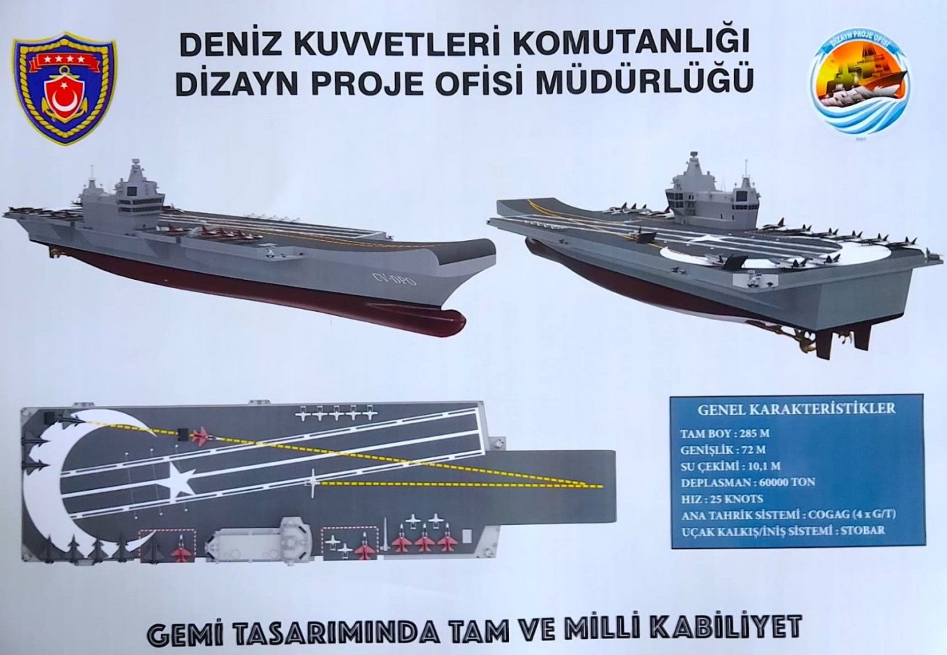 Для Туреччини будівництво MÜGEM, проєкт якого був остаточно затверджений наприкінці літа 2024 року, є дійсно національним проєктом та першим досвідом будівництва дійсно повноцінних авіаносців. Він матиме довжину 285 метрів, при ширині 72 з водотоннажністю у 60 тисяч тонн. Для порівняння британський Queen Elizabeth - 70 тонн, а французький Charles de Gaulle - 42 тонни.