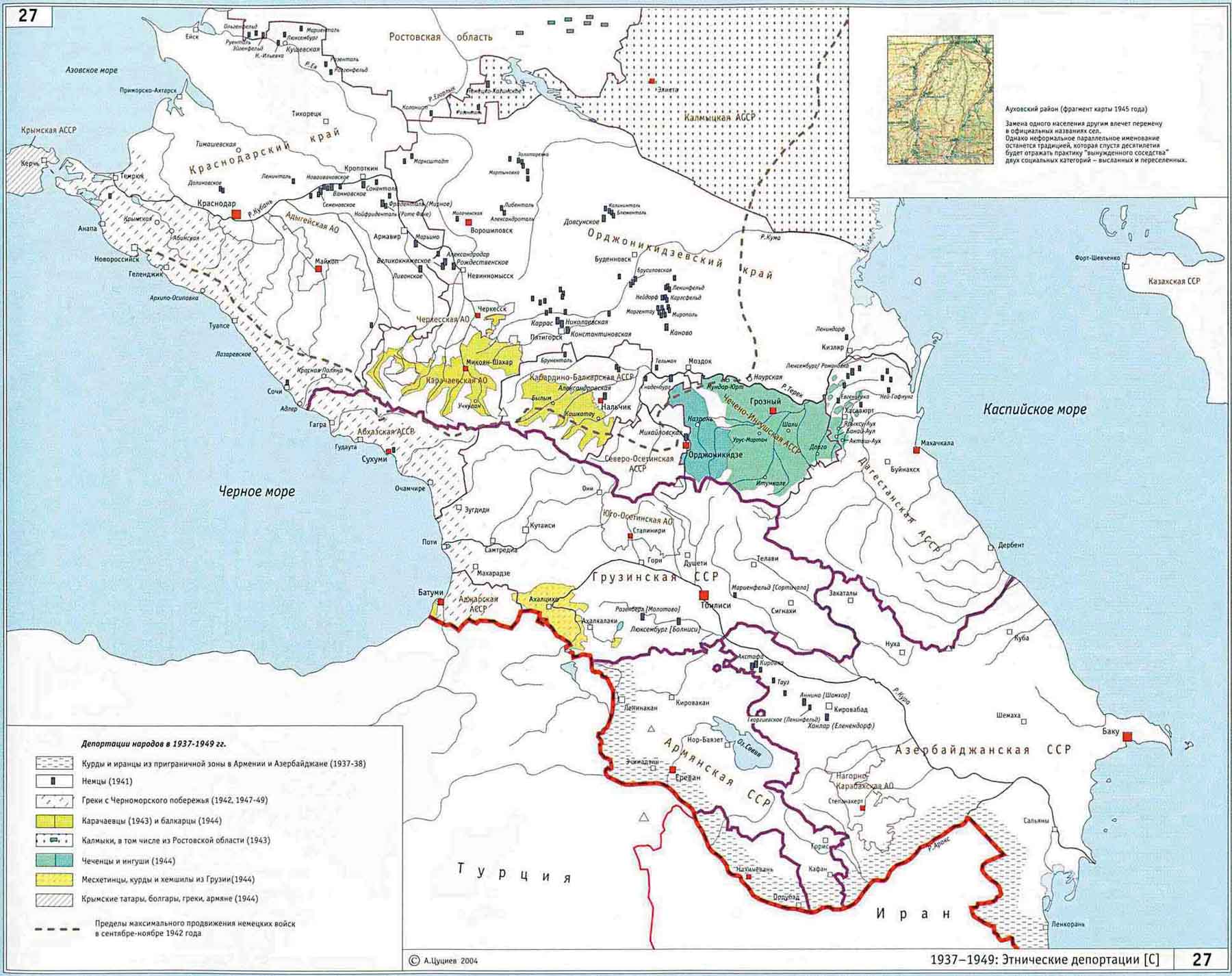 Этнические депортации 1937 - 1949. Атлас этнополитической истории Кавказа (автор А.А. Цуциев, 2007) с сайта iriston.com