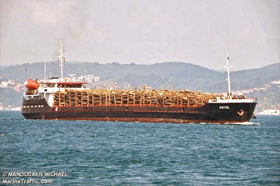 ASTOL: Тип судна: Cargo. Год постройки: 1971. Длина и ширина: 114 m X 13 m. Gross Tonnage: 2580, Тоннаж судна: 3584 t. Записанная скорость (Макс/Средн): 8.5 / 7.9 knots. Флаг: Sierra Leone [SL] . Позывной: 9LD2250. IMO: 8230156, MMSI: 667949000.