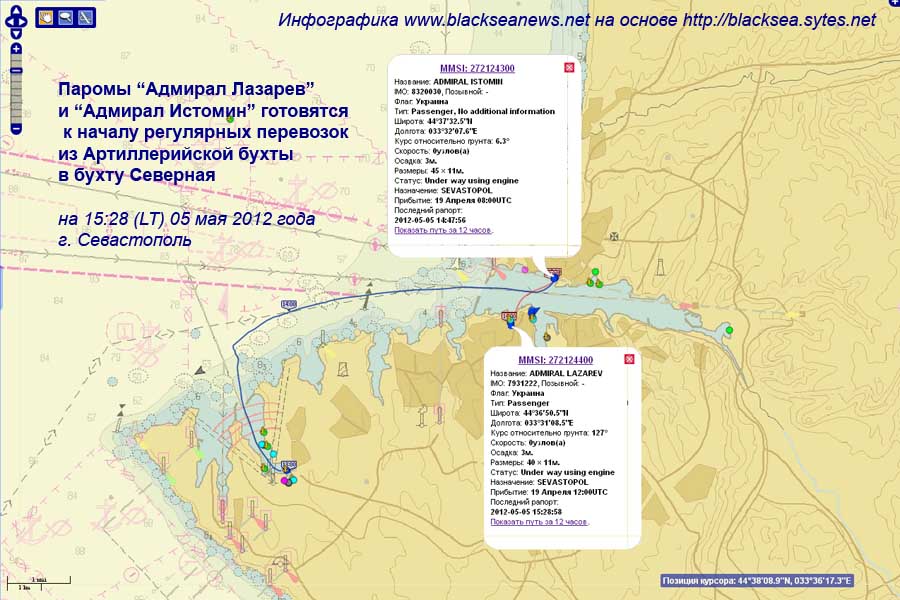 Паром ADMIRAL LAZAREV (бывший YTTEROY) и второй купленный в Норвегии паром ADMIRAL ISTOMIN – (бывший GULLESFJORD), как свидетельствуют данные портала blacksea.sytes.net,с раннего утра начали регулярные перевозки по маршруту Артиллерийская бухта – бухта Северная.