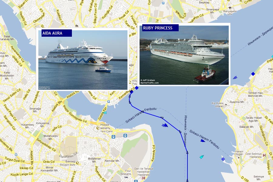 12:40 (LT) 6 июня 2012 года – лайнер AIDAAura, в рамках своего Черноморского круиза, прибыл к терминалу Каракей в Стамбуле.