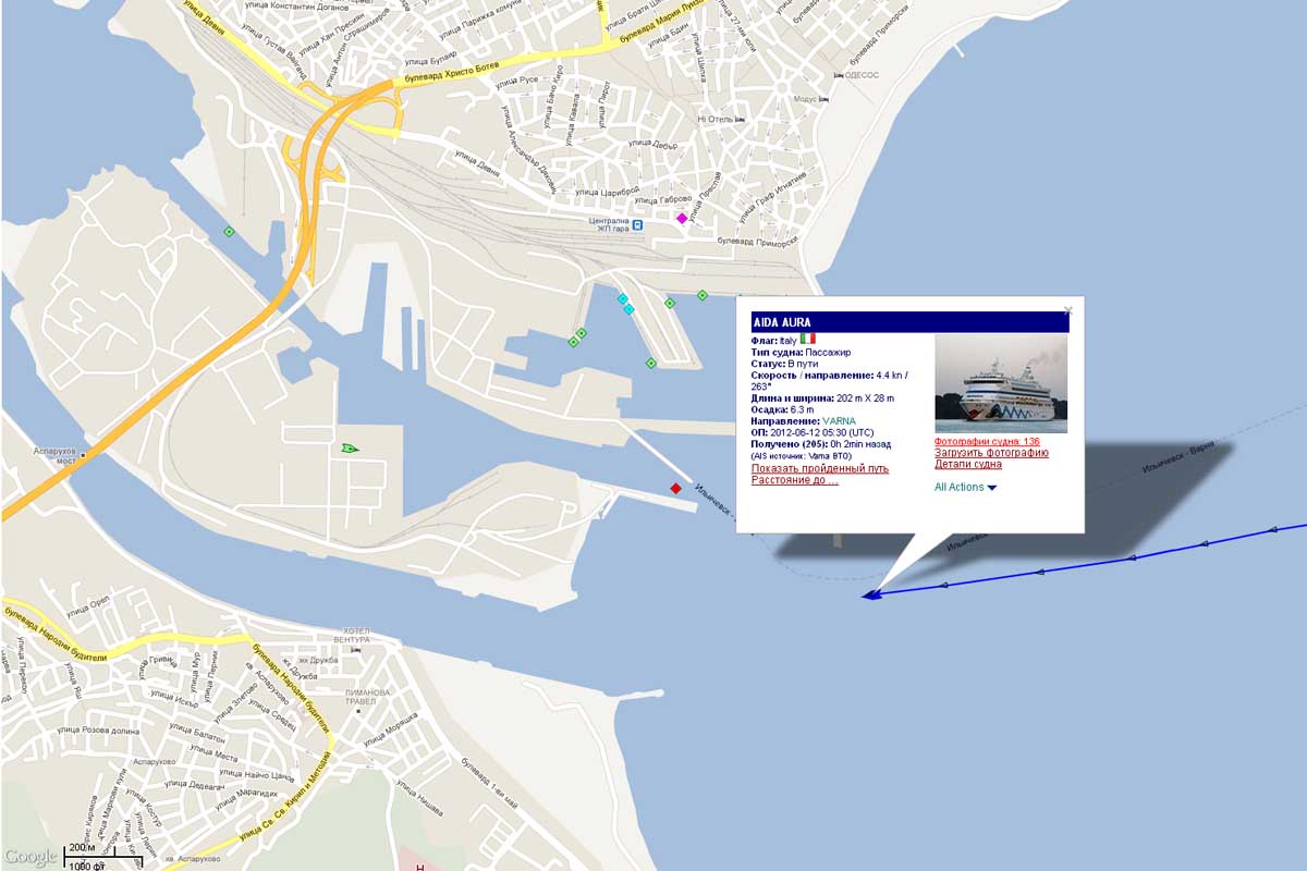 19:40 (LT) 12 июня 2012 года – лайнер AIDAaura отшвартовался от причала в порту Варны и направился курсом на Босфор. Весь день 13 июня лайнер пробудет в море, а 14 июня прибудет в THESSALONIKI. Расчетное время – 04:00 (UTC).