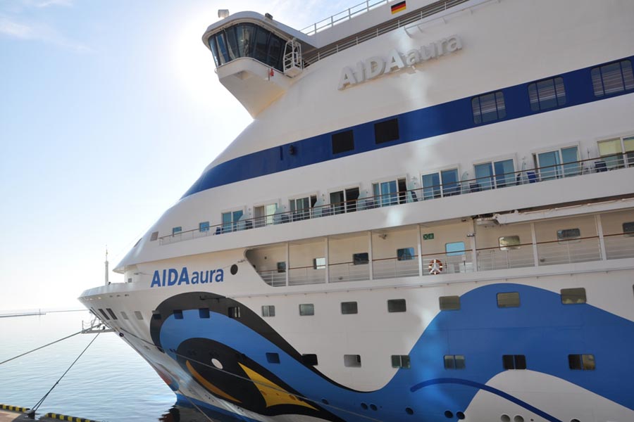 09:00 (LT) 10 июня 2012 года – лайнер AIDAAura пришвартовался у причала №2 в Ялтинском порту.