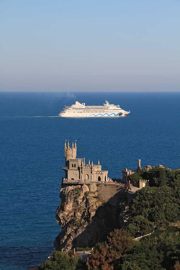 Лайнер проходил мимо мыса Ай-Тодор, на котором расположен этот замок и не менее знаменитый маяк, находящийся чуть правее замка, примерно в 18:00 - 18:10 мв 10 июня 2012 года.