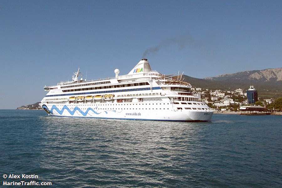 Пассажировместимость лайнера – 1266 чел. Экипаж – 389. Подробнее об этом лайнере и его владельцах читайте в нашем материале: Лайнер AIDAаura - немецкое качество в Чёрном море. Здесь же напомним, что немецкая компания AIDA Cruises специализируется на обслуживании туристов из Германии, Австрии, Швейцарии.