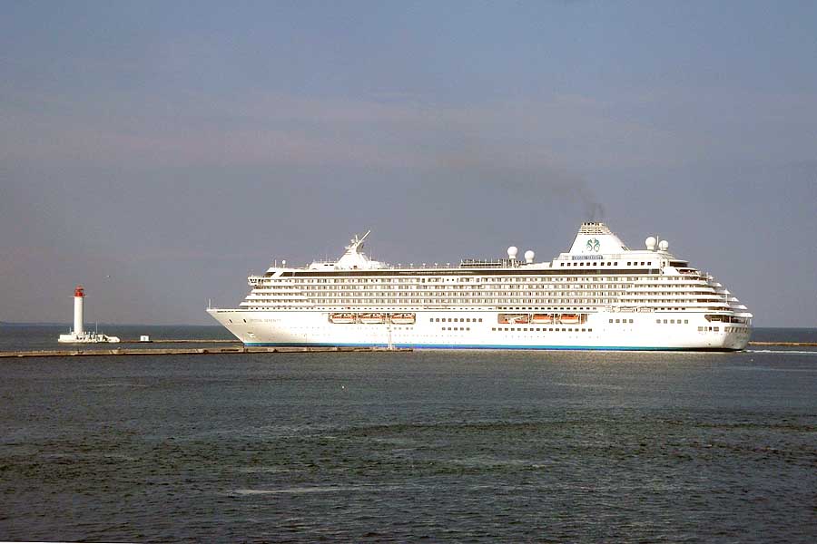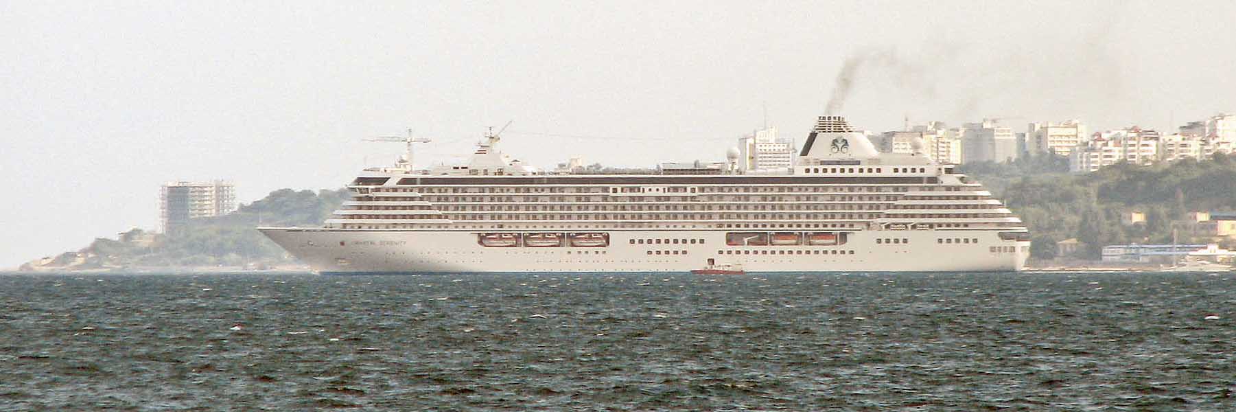 В 2011 году лайнер CRYSTAL SERENITY также гостил в Черном море – 14 сентября он был в Одессе, а 15 сентября – в Ялте. Но в 2012 году программа его пребывания в Черном море увеличилась – в список портов добавился Севастополь, а в Одессе, как мы говорили, лайнер пробыл 2 дня, что встречается на Черном море пока еще редко. В сентябре 2012 года лайнер еще раз побывает в Черном море – в Ялте и Одессе, где снова будет с ночевкой.