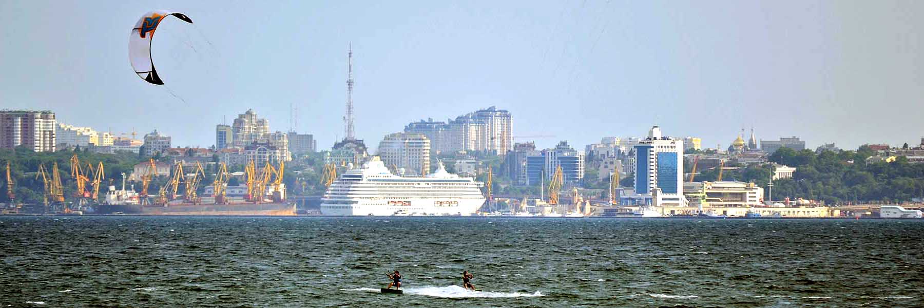 А на этом снимке лайнер, развернувшись в акватории Одесского порта, проходит мимо приметного сооружения – желто-синей башни, о которой есть смысл сказать особо...