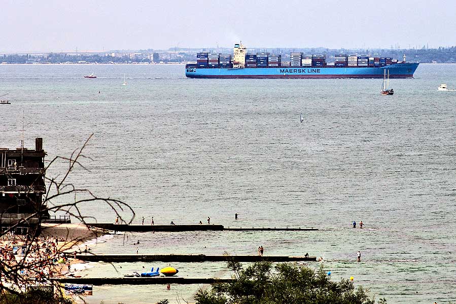 Как видно на следующем фото Владимира ТРОФИМОВА, выход в море контейнеровоза не оставил равнодушными купающихся на одесском пляже...