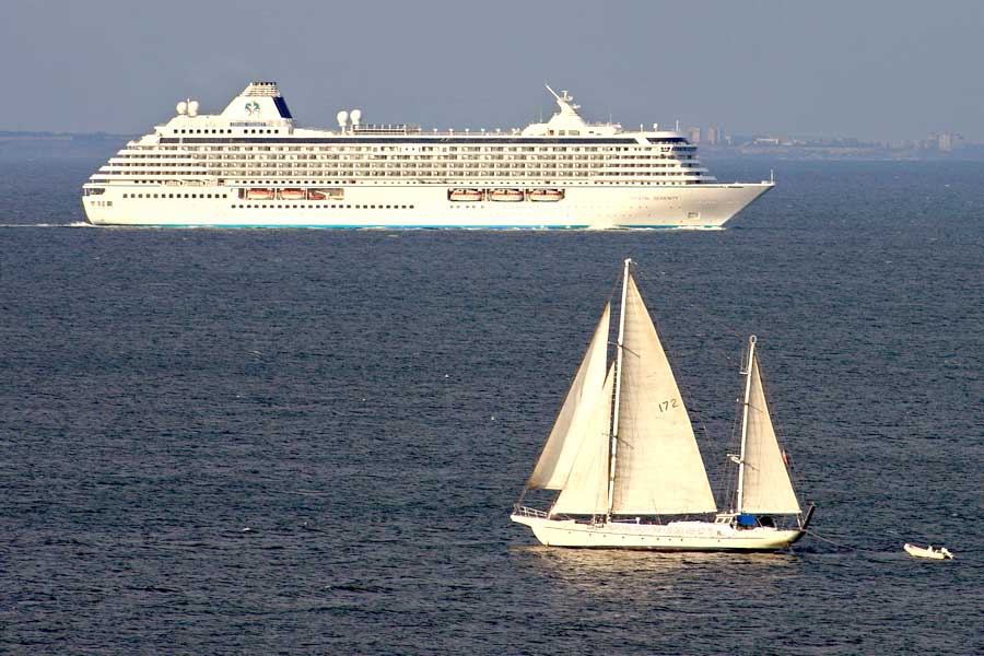 Лайнер CRYSTAL SERENITY вышел из акватории Одесского порта и следом за контейнеровозом, двигаясь по тому же фарватеру, "след в след" повернул на юго-восток в направлении на пролив Босфор – в море, как и на суше, есть свои проспекты, магистрали и перекрестки:)) И на прощанье попал в объектив Владимира ТРОФИМОВА.