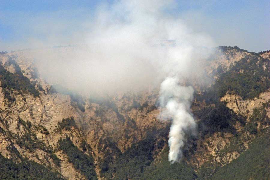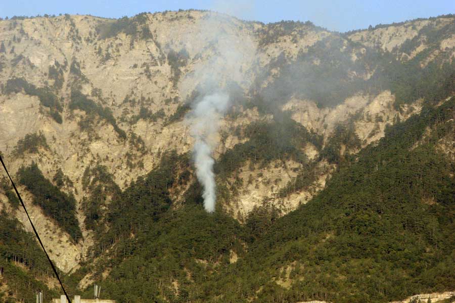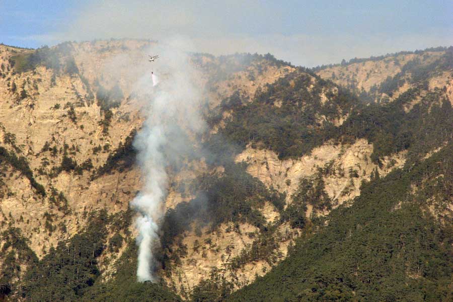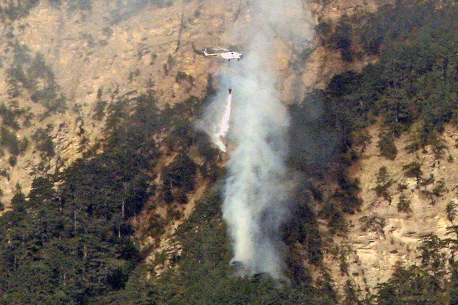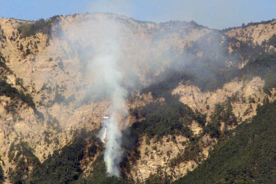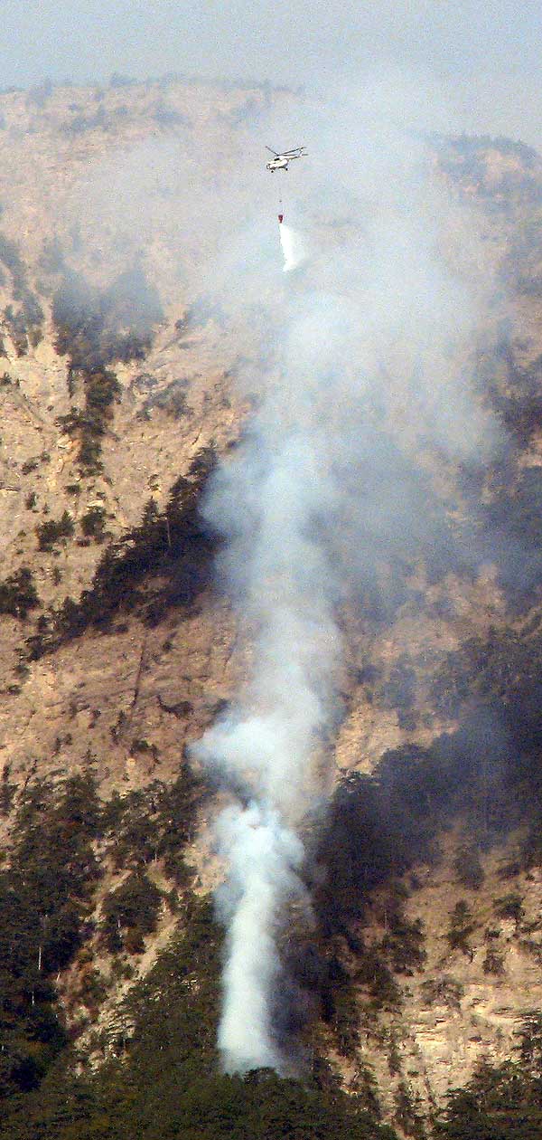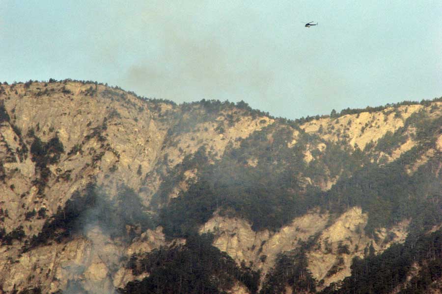 Около 08:10 над очагом пожара появился вертолет Ми-2, принадлежащий Ялтинскому горно-лесному заповеднику. Через час вертолет совершил еще один облет.