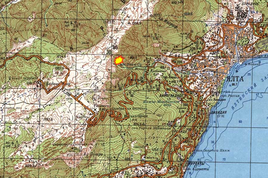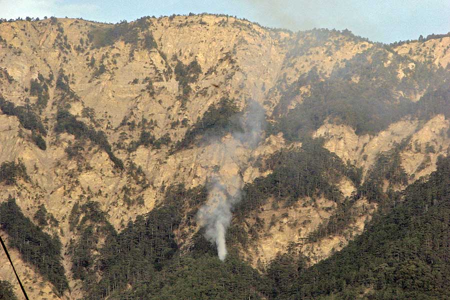 Около 07:15 (LT) 16 сентября 2012 года мы увидели дым примерно в 200 метрах выше водопада Учан-Су. Очаг расположен в труднодоступном месте у подножия скальной стенки плато Ай-Петри. Подъездные пути отсутствуют. В этом районе проходит известная горным туристам Штангеевская тропа...