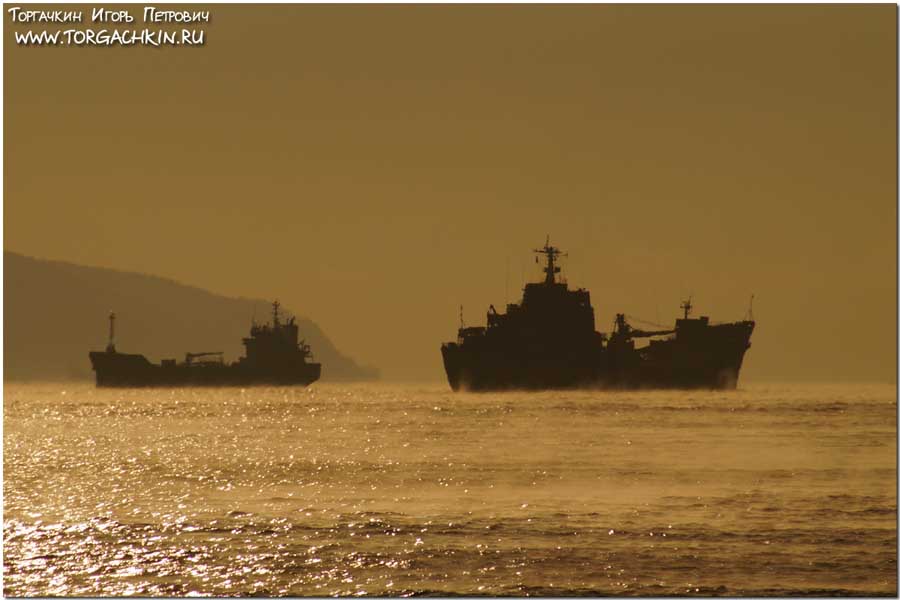 Съемка предлагаемого читателям фоторепортажа сделана в момент, когда корабли находились на выходе из Цемесской бухты - на траверзе Дообского маяка, расположенного на южной оконечности бухты.