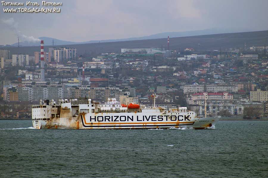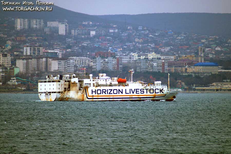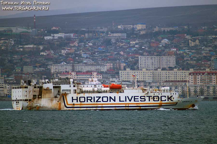Как сообщил редакции BSNews наш новороссийский коллега - известный морской фотограф Игорь Торгачкин - в порту Новороссийск 8-9 января 2013 года побывало очередное судно-"скотовоз" - турецкий ORIENT 1, бывший паром ро-ро, переделанный в Livestock carrier - судно для перевозки живых животных.