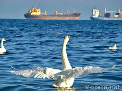 Каждый год лебеди, зимующие в прибрежной морской полосе, радуют жителей морской столицы Болгарии.